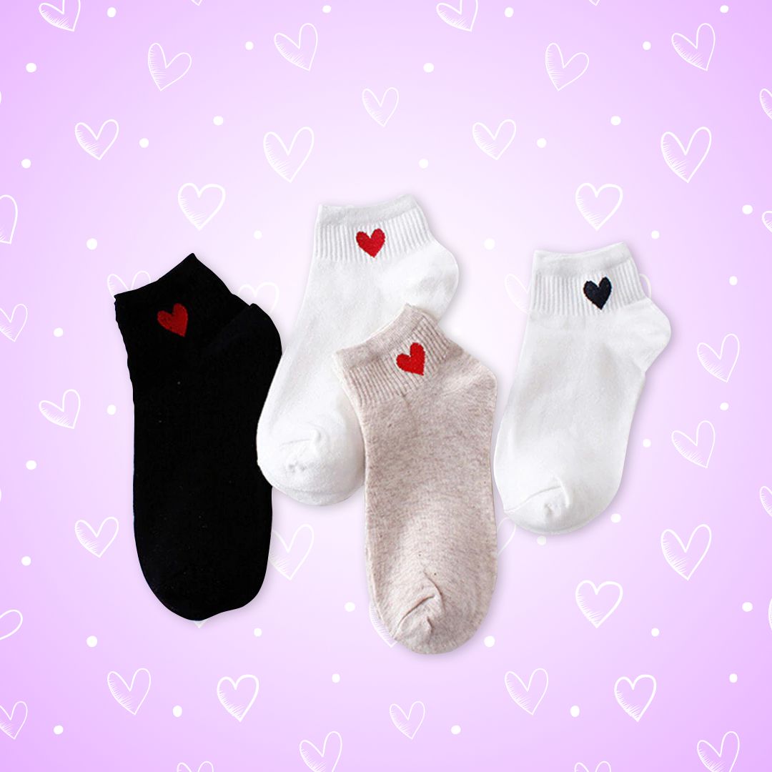 Kit de quatro pares de meias, modelo cano médio. Com lindos detalhes de coração.